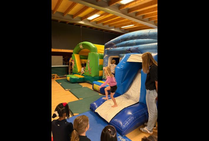 Door het mindere weer moesten de springkussen last minute naar binnen verplaatst worden, maar dit mocht de pret niet drukken.