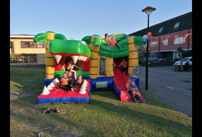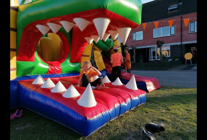 Hier een aantal foto's van het Springkussen en Koningsdag spelletjes aan de Suikerpeergaarde