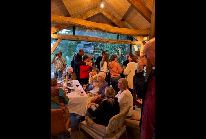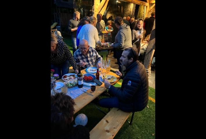 Dankzij de leuke locatie bij een van onze eigen buurtbewoners achter het huis stonden we gezellig, warm en droog en hebben we de sociale banden weer perfect kunnen aanhalen. Laat in de avond vertrokken de eerste buurtbewoners tevreden en voldaan in groepjes naar huis.