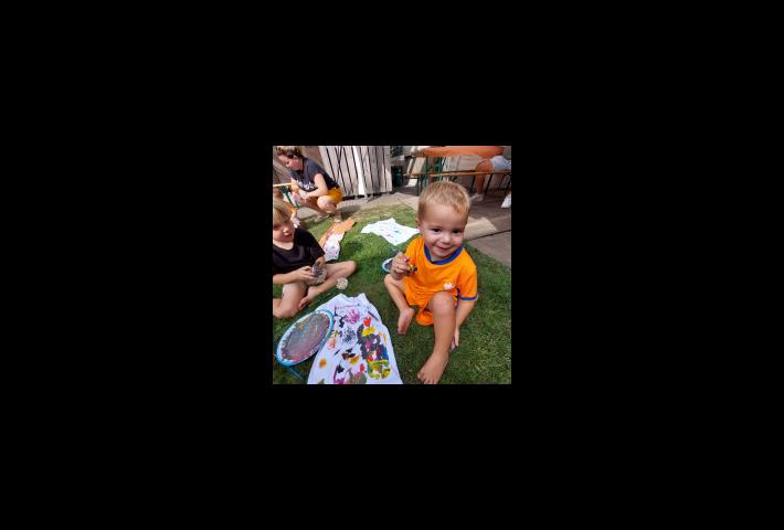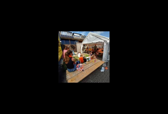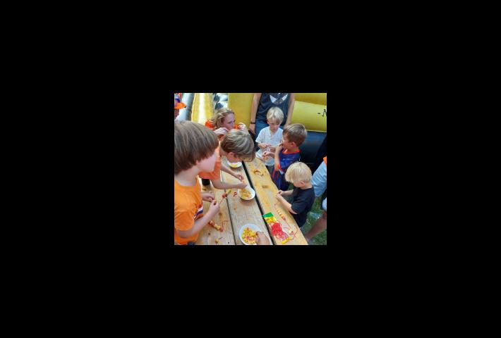 Alle voorbereidingen zijn getroffen; de activiteiten zijn bedacht en voorbereid, de salades worden vers bereid en alle buurtjes hebben er zin in. Met een heel groot springkussen (groter dan verwacht) hadden alle kinderen al de nodige voorpret. Met een vooralsnog redelijke blauwe lucht en een zonnetje, zijn we om 15:30 uur gestart met de activiteiten voor de kinderen. Dit betrof het beschilderen van t-shirts en het maken van een snoepketting met chips.