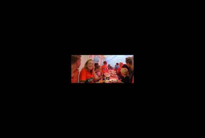 Om en nabij 18:15 werd het heel erg knus in de tent. Het kwam met bakken uit de hemel en als organisatie dachten we allemaal, als de tent het maar houdt en niet ineens wegvliegt. Gelukkig was dit niet het geval en werd er veel gelachen en gekletst onder het genot van lekkere drankjes.
