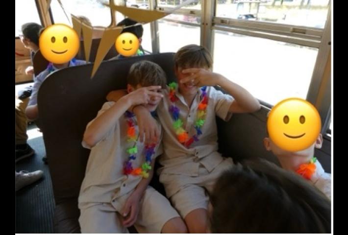 Met de partybus werden de kinderen opgehaald bij school om al swingend naar de feestlocatie te gaan. Na een grote muzikale omweg werden ze daar ontvangen met een heerlijk welkomstdrankje. Even snel wat foto’s onder de ballonnenboog en toen aanvallen op het buffet. Heerlijke hamburgers, broodjes knakworst, pizza’s en bladerdeeghapjes en allerlei fruit werden met smaak gegeten. Daarna was het tijd voor de muziekbingo. Onze bingomaster Gert-Jan leidde de bingo in goede banen en al snel was daar de 1e bingo. Uiteindelijk was er voor iedereen een kleinigheidje.
