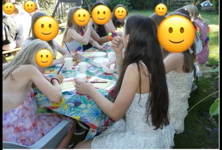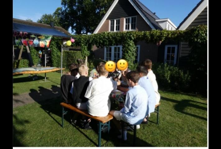 In de tuin konden de kinderen allerlei activiteiten doen; tafeltennis, trampoline, springen, voetballen en niet te vergeten de disco en de fotobooth!